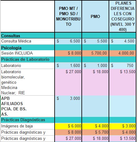 Adjuntamos imagen con nuevos valores, a partir de diciembre, de coseguro de la Obra Social OSPe